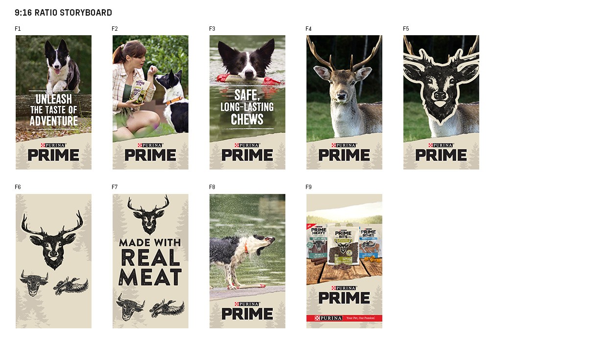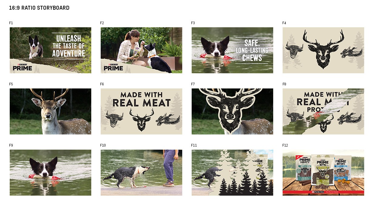 I was tasked with developing a fast, compelling 15-second spot for Purina Prime. Working from the packaging design files and raw footage of the dog talent, I built a clear visual narrative centered on one core message: Purina Prime is made with real meat.